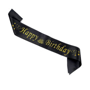 Happy Birthday Glittered Sash - Black (24 Packs)